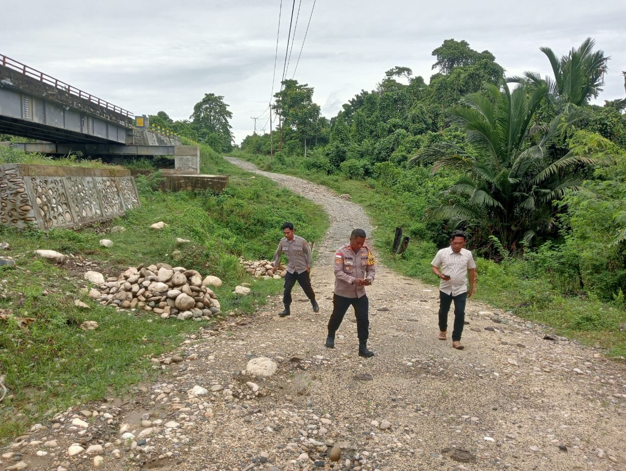 Menindaklanjuti laporan tersebut, Kapolsek Bonggo Iptu Yustus Maudul, S.E., M.Si., mendatangi langsung lokasi kejadian untuk memastikan situasi serta memberikan imbauan kepada masyarakat. Ia menegaskan agar oknum maupun warga yang telah mengambil atau berniat mengambil batu bronjong tersebut segera menghentikan aktivitasnya, karena dapat menyebabkan kerusakan pada jembatan yang baru diperbaiki.