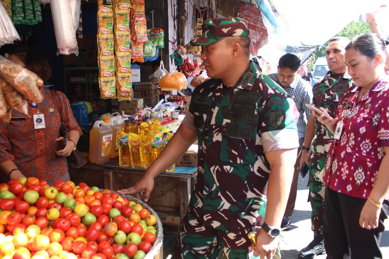 Kabag Perekonomian Kota Bitung Karlintje Lefina Monareh, Kadis Perdagangan diwakili Kabid Seksi Stabilisasi Harga Barang Kebutuhan Pokok Dinas Perdagangan Kota Bitung Bpk. Jemy J. Wenas, Kadis Kesehatan Kota Bitung diwakili Bapak Roger, Pasi Ops Kodim 1310/Bitung Lettu Inf Edison Kasenda, Kabid Gakda Satpol-PP Pemkot Bitung, Bpk. Eqmond J. Rampengan, S.H. Saat dikonfirmasi terkait kegiatan tersebut, Dandim 1310/Bitung Letkol Inf Dewa Made DJ, menyebut, Sidak ini bertujuan untuk memantau harga dan persediaan komoditas bahan pokok dan mengantisipasi siklus inflasi.