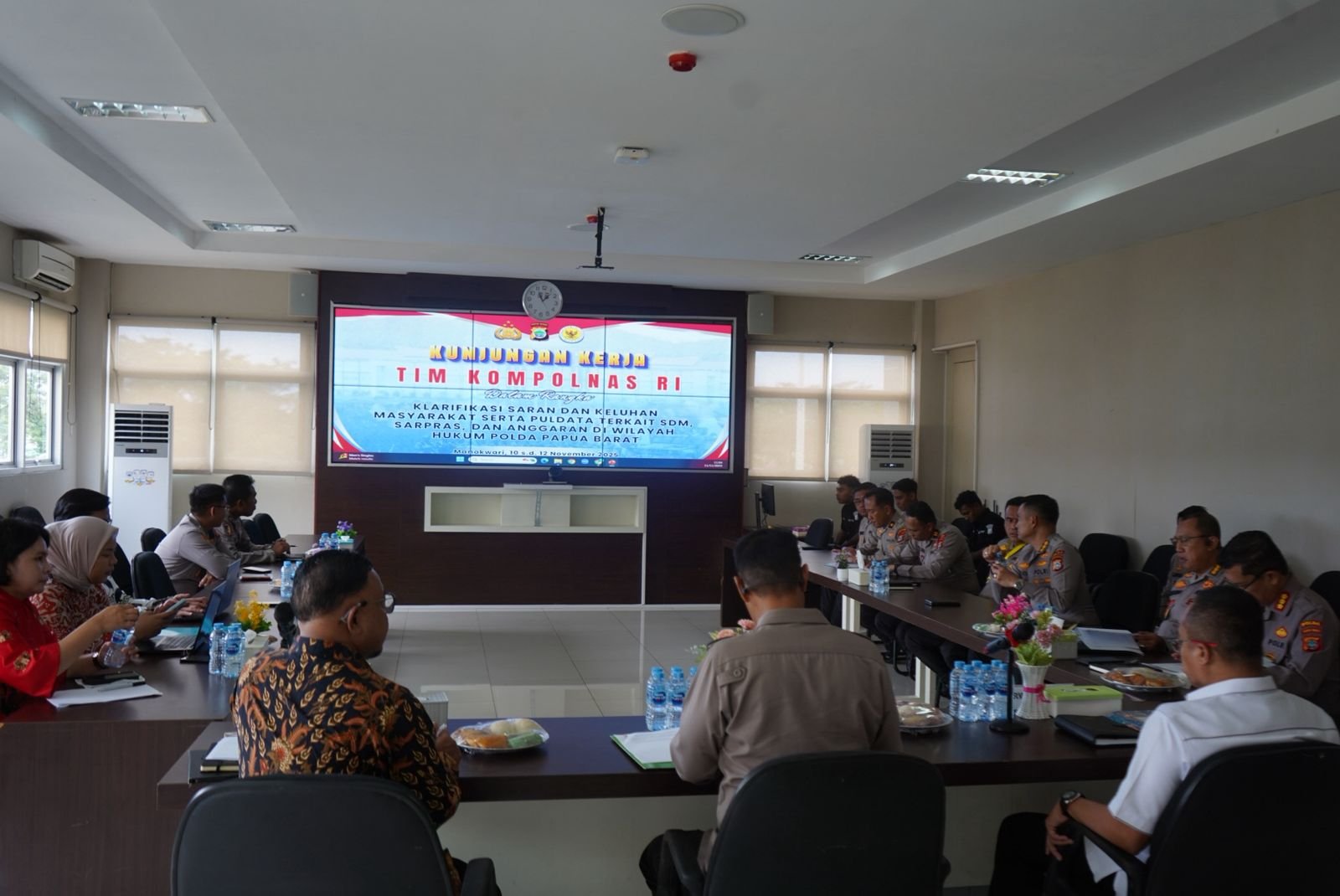 Manokwari, Selasa (11/11/2025) – Polda Papua Barat menerima kunjungan kerja dari Komisi Kepolisian Nasional (Kompolnas) RI yang dipimpin oleh Mochammad Choirul, S.H., bersama anggota tim Mardonna Lamtio, S.Pd., M.M., Zullastri, Spri, dan Muhammad Yoviansyah.