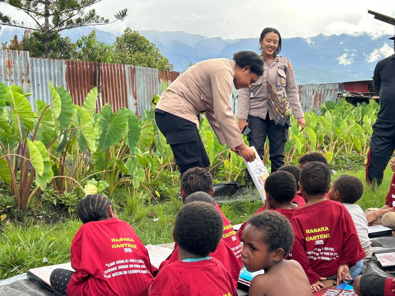 Wamena, Jayawijaya – Satuan Tugas Operasi Rasaka Cartenz 2025 melalui Subsatgas SI IPAR (Polisi Pi Ajar) kembali melaksanakan kegiatan pembelajaran bagi anak-anak di wilayah Kabupaten Jayawijaya. Kegiatan kali ini berlangsung di halaman rumah Bapak Fredi Wenda di Jalan Bhayangkara, Distrik Wamena, Jumat, (28/11) Pagi.