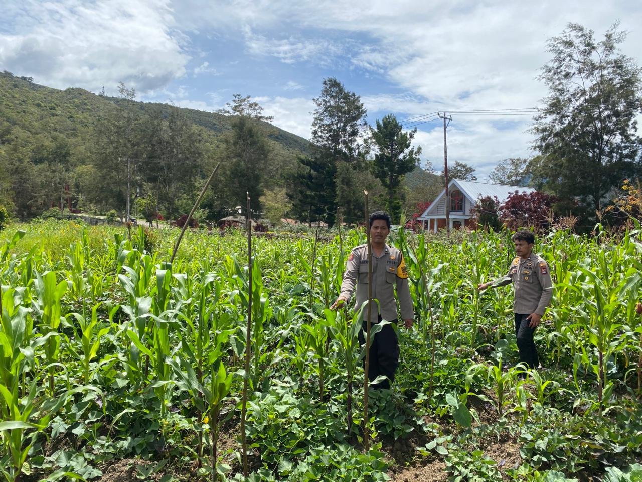 Kegiatan ini merupakan bagian dari program “Satu Pekarangan Pangan Bergizi” yang digagas untuk membantu masyarakat memenuhi kebutuhan pangan secara mandiri. Dalam pengecekan tersebut, Brigpol Unggul Mahendra bersama Bripda Claudio mendapati tanaman jagung varietas unggulan jenis jagung manis tumbuh dengan cukup baik.