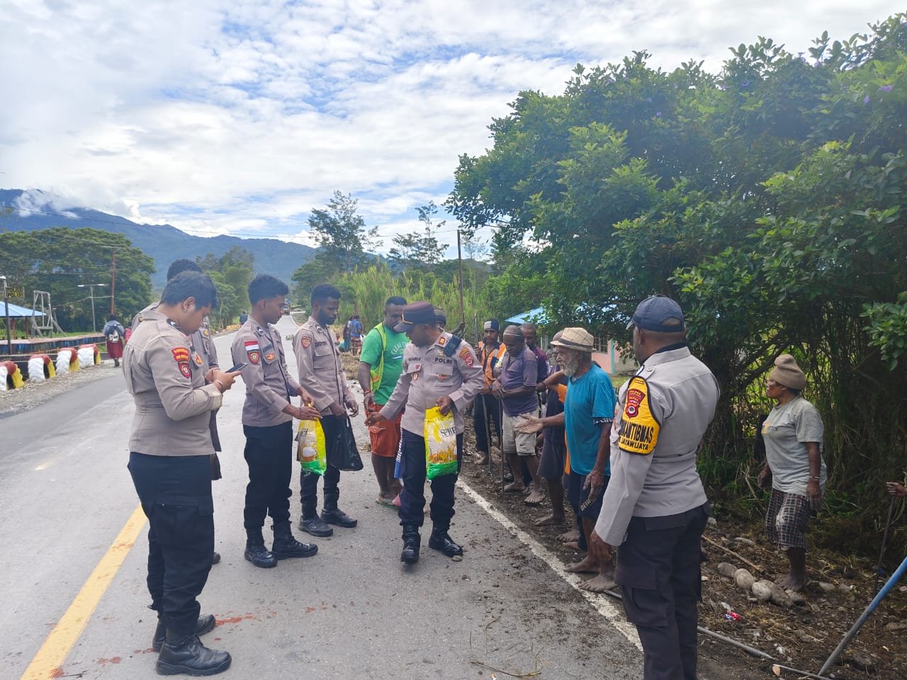 Selain sambang dan pemberian bantuan, Polsek Kurulu juga melaksanakan patroli ke ruas-ruas kampung untuk memastikan keamanan dan kenyamanan masyarakat tetap terjaga.