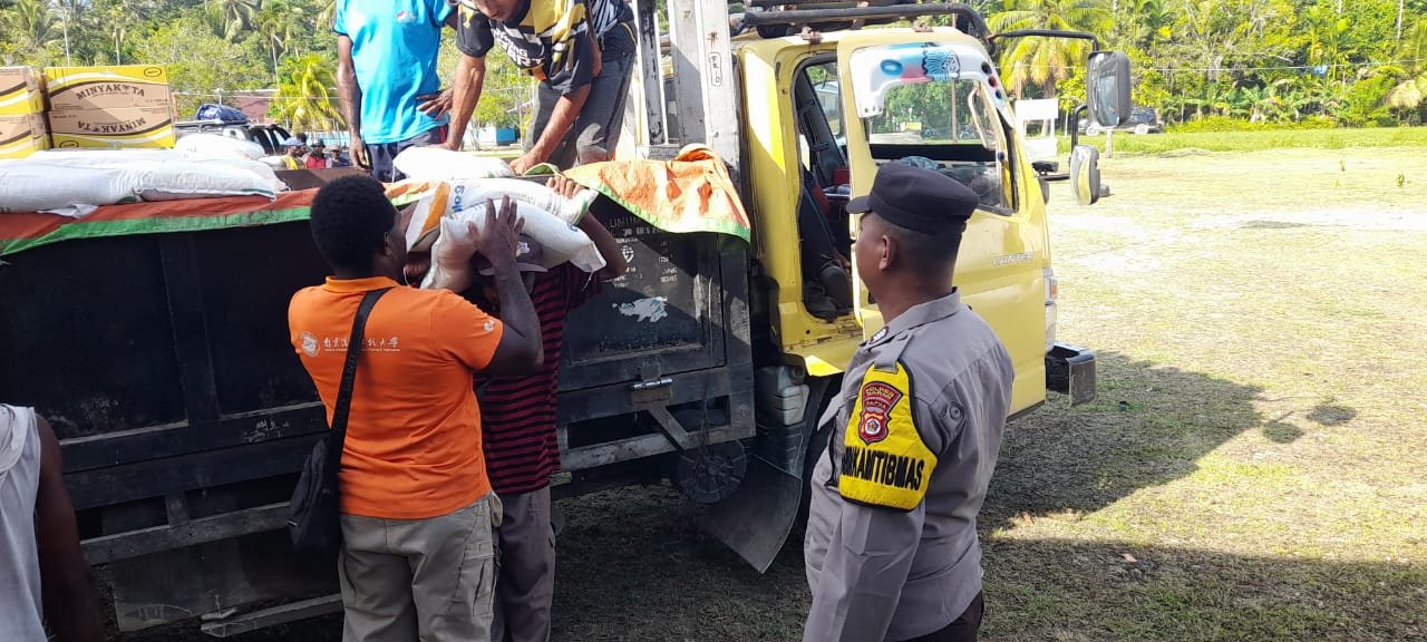 Polsek Pantai Barat Dampingi Penyaluran Bantuan Pangan di Distrik Pantai Barat