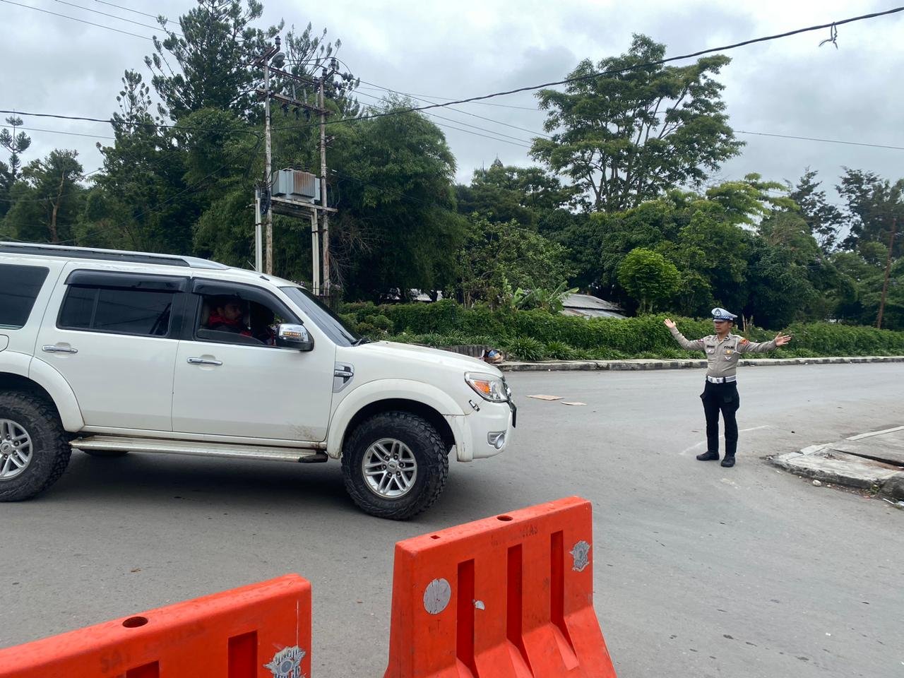 Kemudian, personel lalu lintas juga melaksanakan pengaturan arus kendaraan di Jalan Safri Darwin, Jalan Sulawesi, dan Jalan Irian.