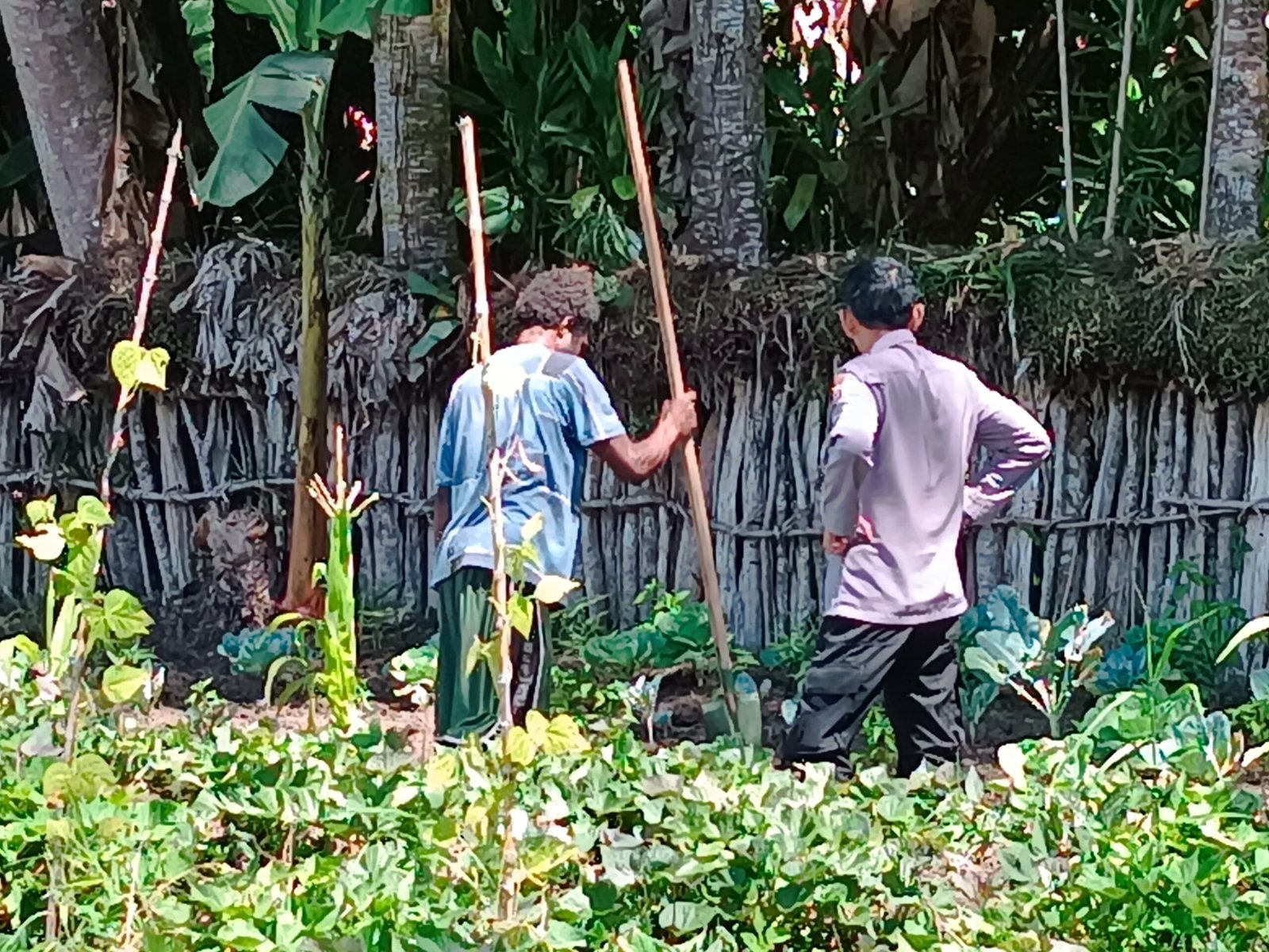 Dalam rangkaian kegiatan, personel Sat Binmas menuju lokasi kebun kelompok tani di Kampung Elagaima untuk melakukan pengecekan tanaman jagung yang telah ditanam pada tanggal 3 Desember 2025. Setibanya di lokasi, personel melakukan pengecekan kondisi lahan, kesuburan tanah, serta pertumbuhan tanaman jagung.