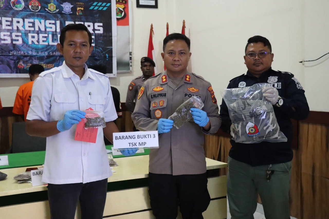 Dalam konferensi tersebut, Kapolres menjelaskan bahwa tiga kasus dimaksud melibatkan tersangka berinisial ENP alias A, GYB alias D, dan MP alias A, yang ditangkap pada waktu dan lokasi berbeda oleh Sat Resnarkoba Polres Sarmi.