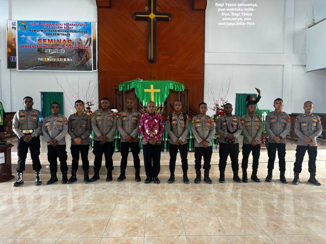Sarmi – Personel Polres Sarmi yang beragama Kristen melaksanakan kegiatan Ibadah Minggu Religi pada hari Minggu, 2 November 2025, bertempat di GKI Ebenhaezer Sarmi. Kegiatan ini menjadi bagian dari pembinaan rohani rutin yang bertujuan memperkuat iman dan karakter personel dalam menjalankan tugas sebagai pelindung, pengayom, dan pelayan masyarakat.