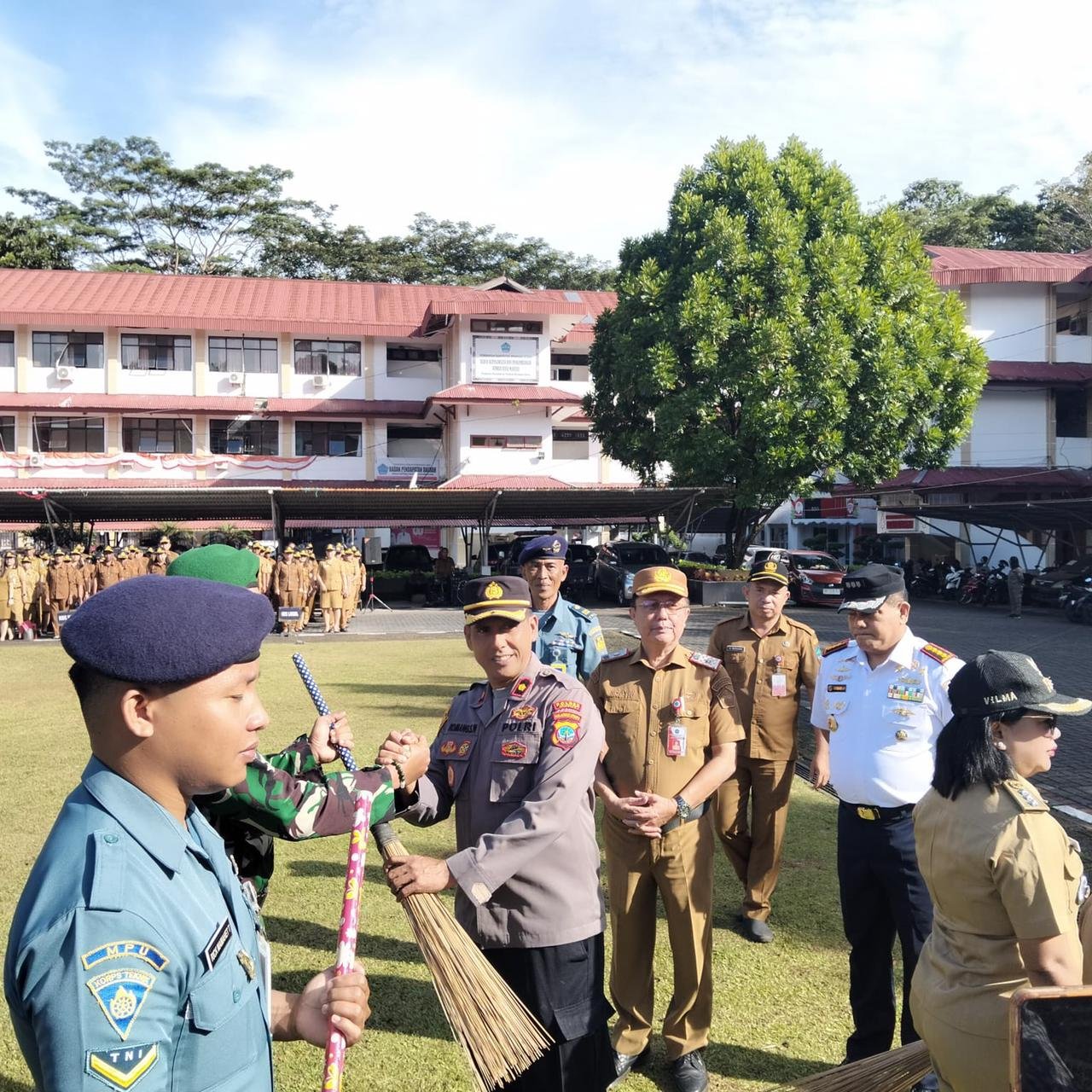 Personel Kodim 1310/Bitung bersama Polres Minut, Basarnas Sulut, Bakamla Minut, Lanudal Manado, Seluruh ASN Pemkab Minut dan Petugas Kebersihan sekitar 200 orang terlibat melaksanakan Apel Bersama.